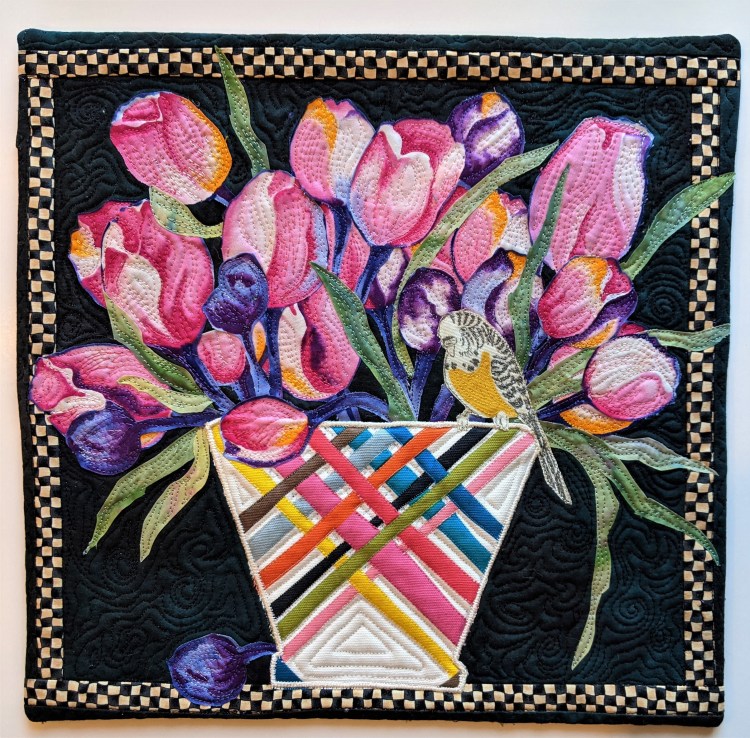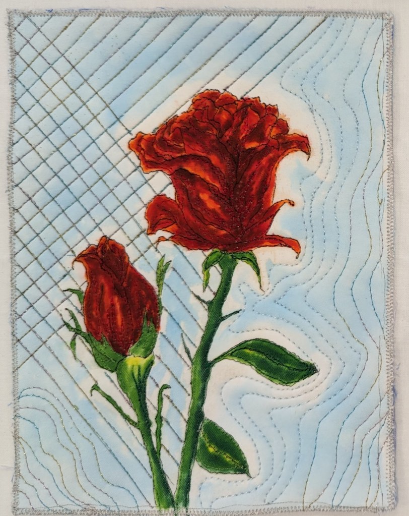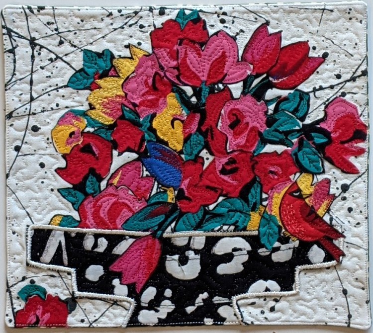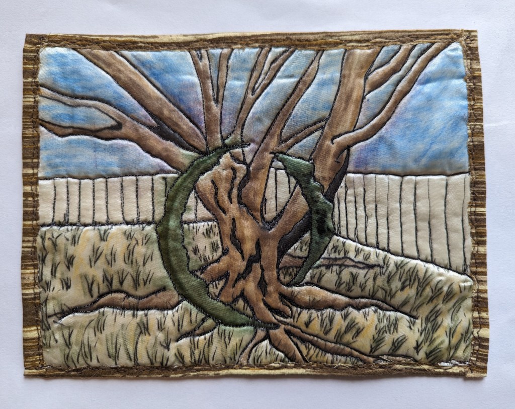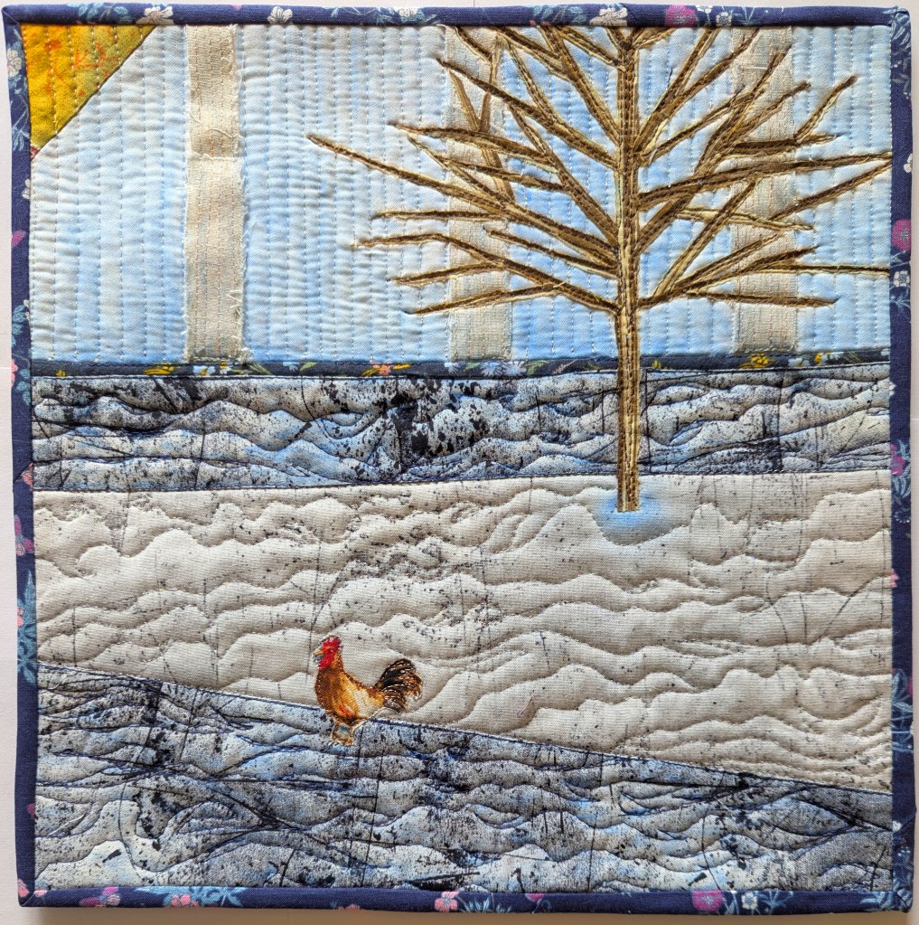 Challenge piece for the Utah Surface Design Group “Summer Dreamin’ on Such a Winter’s Day” 2021 small works challenge. Gifted to a friend.